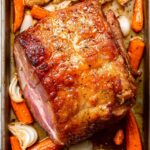 - Slice and Serve: Remove the corned beef from the oven and place on a cutting board. Slice the meat against the grain into 1/4 inch thick slices. Serve warm with the roasted carrots and onions.