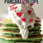 Stack those bright green pancakes high, drizzle generously with cream cheese glaze, then finish with red heart sprinkles and a dollop of whipped cream if you like. The contrast of colors is perfect for holiday mornings and guaranteed to make everyone smile.