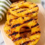 - Grill pineapple: Place the pineapple slices on the grill and cook for 2-3 minutes on each side until caramelized and grill marks appear.