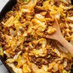 A hearty and flavorful Ground Beef and Cabbage Skillet combining lean ground beef, tender cabbage, and savory tomato sauce with smoky and Italian seasoning, perfect for a quick and satisfying meal.