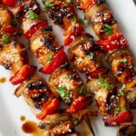 Honey Garlic Chicken Skewers feature tender pieces of chicken marinated in a sweet and savory honey garlic sauce, then grilled to perfection on a BBQ or griddle. This flavorful recipe combines Asian influences with American BBQ style, perfect for a delicious dinner served with salad, rice, or potatoes.