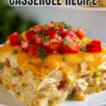 A classic Tex-Mex King Ranch Chicken Casserole featuring tender seasoned chicken, sautéed vegetables, creamy cheddar sauce, and crunchy tortilla chips baked to bubbly perfection.