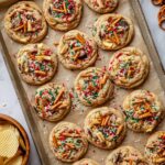 Kitchen Sink Cookies are a delightful treat filled with a surprising mix of sweet and salty ingredients including chocolate chips, toffee, pretzels, potato chips, and festive jimmies. These thick, chewy cookies are perfect for holiday celebrations or any time you want a fun and textured cookie experience. With a buttery dough and a crunchy topping, each bite offers a perfect balance of flavors and textures.