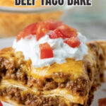 Let the bake cool for a few minutes before slicing to help it hold together better when serving. Then dig in with your favorite toppings and enjoy the layered taco goodness!