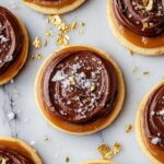 - Melt Chocolate and Finish: Melt milk chocolate in a microwave-safe bowl in 30-second intervals until smooth. Spoon melted chocolate over the caramel on each cookie. Immediately sprinkle with flaky sea salt and edible gold leaf if using. Allow cookies to cool so caramel and chocolate set completely.