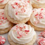 - Frost cookies: Frost each cooled cookie with about 2 teaspoons of frosting and garnish with crushed peppermint candies.