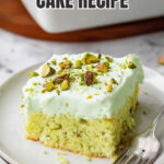 - Frost the Cake: Once the cake is cooled, spread the pistachio pudding frosting evenly over the cake. Sprinkle with chopped pistachios if desired.