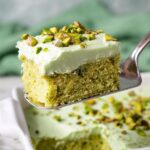 - Frost the Cake: Once the cake is cooled, spread the pistachio pudding frosting evenly over the cake. Sprinkle with chopped pistachios if desired.