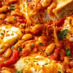Pizza Beans is an easy one-skillet recipe featuring blistered cherry tomatoes, cannellini beans simmered in a flavorful tomato sauce, topped with melted mozzarella and parmesan cheese. Served warm with crusty bread, it offers a cheesy, saucy, and hearty meal perfect for a quick dinner or lunch.