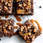 - Add Caramel: Pour 1/2 cup of caramel sauce over the brownies and use a spatula to spread it into the holes. Refrigerate the brownies for 1 hour or freeze for 30 minutes to let the caramel set firmly.