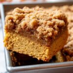 - Top batter with streusel: Sprinkle the streusel evenly over the pumpkin cake batter to create a crunchy topping.