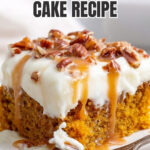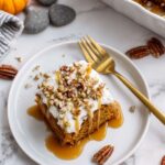 Pumpkin Poke Cake with Caramel, Cream Cheese Frosting, and Pecans Recipe