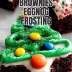 - Frost brownies: Spread the eggnog cream cheese frosting evenly over the cooled brownies. Optionally cut brownies into festive shapes such as squares, triangles, or use cookie cutters for holiday designs.