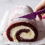 A classic Red Velvet Cake Roll featuring a light, fluffy red cocoa sponge cake rolled with smooth cream cheese frosting. Perfect for celebrations or a delightful dessert, this cake combines a tender crumb, vibrant color, and creamy filling rolled into an elegant spiraled presentation.