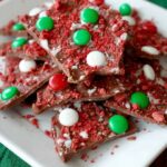 This festive Christmas Bark with Red Velvet Cookie is a delightful treat combining rich milk chocolate, crunchy mint M&Ms, and pieces of red velvet sandwich cookies. Perfect for holiday gatherings, this easy no-bake recipe delivers a sweet and colorful snack that can be prepared quickly and stored in the refrigerator for convenience.
