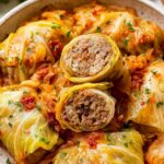 - Roll the Cabbage Rolls: Place about ¼ cup of the meat mixture onto each cabbage leaf. Fold in the ends and roll tightly. Repeat until all meat and leaves are used.
