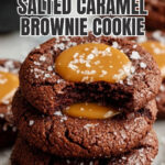 These Salted Caramel Brownie Cookies combine rich dark chocolate brownie batter with a gooey homemade salted caramel center, topped with flaky sea salt for the perfect balance of sweetness and saltiness. Bite into a glossy, crackly cookie exterior with a soft, fudgy middle and delicious caramel surprise.