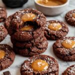 These Salted Caramel Brownie Cookies combine rich dark chocolate brownie batter with a gooey homemade salted caramel center, topped with flaky sea salt for the perfect balance of sweetness and saltiness. Bite into a glossy, crackly cookie exterior with a soft, fudgy middle and delicious caramel surprise.