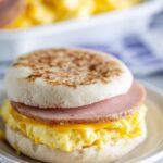 Delicious and easy sheet pan egg breakfast sandwiches made by baking a fluffy egg mixture with cheese, served on toasted English muffins with your choice of bacon, Canadian bacon, or ham. Perfect for meal prep and convenient freezer-friendly breakfasts.