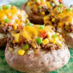 - Assemble and Bake: Spoon the beef and vegetable filling into each opened potato, then top with 1 cup shredded cheddar cheese. Return the stuffed potatoes to the 400°F oven for about 5 minutes, or place under the broiler for 2 to 3 minutes until the cheese is melted and lightly browned.