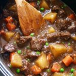 - Cook the stew: Cover and cook on high for 5 hours or on low for 8 hours, until the beef is tender and vegetables are cooked through.