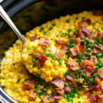 This Slow Cooker Creamed Corn recipe offers a rich and creamy side dish made with frozen corn, cream cheese, and butter. Perfectly seasoned and topped with crispy bacon and fresh chives, it's an effortless, comforting addition to any meal that cooks slowly to perfection.