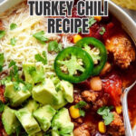 We often serve this turkey chili with warm cornbread or tortilla chips for scooping. A simple green salad on the side brightens the meal, or you could go full Tex-Mex with Spanish rice and a side of guacamole.