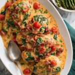 A flavorful Smothered BLT Chicken recipe featuring tender chicken breasts cooked with crispy bacon, fresh spinach, grape tomatoes, and a creamy Parmesan sauce, perfect for a satisfying dinner.