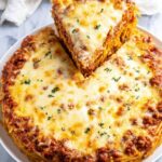 This Spaghetti Pie recipe layers tender spaghetti mixed with a savory meat sauce and creamy ricotta and cream cheese mixture, topped with melted mozzarella for a comforting Italian-inspired casserole that's perfect for family dinners.