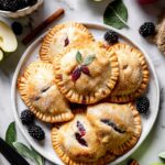 These spiced apple and blackberry hand pies are easy to make and bursting with the perfect balance of sweet apples and juicy blackberries, enhanced with warm cinnamon and honey. Encased in golden, flaky shortcrust pastry, they make a delightful dessert perfect for any occasion.
