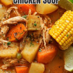 Return the shredded chicken to the pot along with the blended vegetable puree. Add the chopped carrots, celery, halved corn ears, and peeled, chopped potatoes. Cover the pot and gently simmer for about 15 minutes, or until the vegetables are tender but still hold their shape. You’ll notice the broth becoming more vibrant and aromatic as everything melds together into a comforting, nourishing soup.