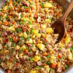 This Pineapple Fried Rice recipe is a flavorful and colorful dish combining tender ham, sweet pineapple chunks, vibrant vegetables, and savory seasonings. Perfect for using leftover rice, it features a balance of sweet, salty, and spicy notes with a touch of crunch from cashews, making it a delightful main course or side dish that's quick and easy to prepare.