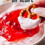 Strawberry Pretzel Salad Dip is a creamy, sweet, and tangy dessert dip perfect for parties. Made with softened cream cheese, sugar, Cool Whip, and strawberry pie filling, this easy-to-make dip pairs wonderfully with salty pretzels for a delightful sweet and salty treat.