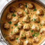 This classic Swedish Meatball recipe features tender meatballs made with a blend of ground beef and pork, seasoned with aromatic spices and Parmesan cheese. They are browned to perfection and simmered in a rich, creamy sauce made with beef broth, sour cream, and Dijon mustard, creating a comforting dish perfect for serving over mashed potatoes or egg noodles.