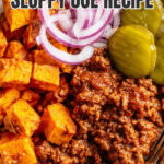 Sloppy Joe Bowls featuring roasted sweet potatoes and a flavorful ground beef sloppy joe mixture make a comforting and healthy twist on a classic favorite. This easy recipe combines tender, spiced sweet potatoes with a rich tomato-based meat sauce, served with pickles and red onions for added tang and crunch.