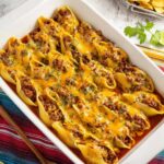 This Taco Stuffed Shells recipe combines tender jumbo pasta shells filled with a flavorful, seasoned ground beef mixture and topped with enchilada sauce and melted sharp cheddar cheese. Perfect for a comforting Mexican-inspired dinner, these baked stuffed shells are easy to prepare and crowd-pleasing.