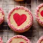 Valentine’s Slice and Bake Heart Cookies are charming, festive treats perfect for celebrating love. These cookies feature a tender buttery dough, beautifully tinted pink or red, cut into heart shapes, stacked, wrapped in plain dough, rolled in sprinkles, and sliced before baking. Their crisp edges and soft centers bring a delightful texture contrast, making them an ideal dessert for Valentine's Day or any special occasion.