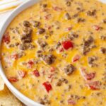 This Velveeta Sausage Cheese Dip is a creamy, cheesy, and flavorful appetizer perfect for parties and game days. It combines hot pork sausage, Velveeta cheese, and spicy Rotel tomatoes and green chilies for a rich and satisfying dip.