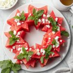 A festive and refreshing Watermelon, Feta and Mint Christmas Wreath Salad perfect for holiday gatherings. This vibrant salad combines crisp chilled watermelon cut into wreath shapes with fresh mint leaves and salty Greek feta cheese, all drizzled with a tangy lime, honey, and olive oil dressing. It’s easy to assemble and makes a stunning centerpiece for your Christmas table.