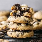 I love dusting a tiny bit of powdered sugar or even a little sea salt on top of these cookies right out of the oven. It adds a touch of elegance and boosts the flavor without overpowering the white chocolate or Oreos.