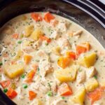 - Slow Cook the Stew: Cover the slow cooker and cook on low for 8 hours, or alternatively on high for 5 hours, until the chicken and vegetables are tender.