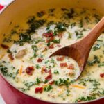 A hearty and creamy Zuppa Toscana soup featuring spicy Italian sausage, tender potatoes, kale, and a rich broth, perfect for a comforting meal any day.